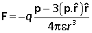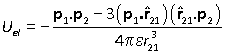 The vector r1–r2 is the interparticle vector r12. Defining the dipole moment vector p to equal qr12, the result can be written
