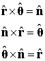 The angular velocity is a vector directed along the axis of rotation in a direction defined by the right hand screw rule. Since the unit vectors in the directions r, θ and n are orthogonal it is not difficult to see that they are linked by a set of vector products: